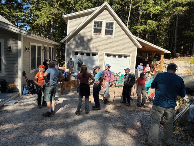 Here we joined the hikers who had driven down from the trailhead as well as a few hikers who had skipped the hike. We enjoyed Jacob and Rena’s hamburgers and hot dogs as well as the pot luck servings of side dishes and desserts that the rest of us had brought. We spent a wonderful two hours eating and socializing in the beautiful setting of Jacob and Rena’s home on the pond. Reluctantly, we started ferrying those of us who had left our vehicles at the trailhead around 1:30 pm after a wonderful hike and lunch on a glorious fall day.