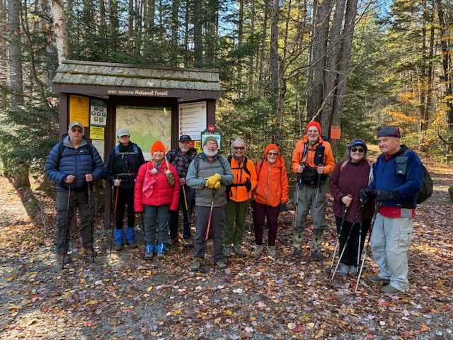 The hike back was fairly uneventful. We passed many hikers who were on their way to the hut, as there were 36 who had reservations for the night. We also passed a few other day hikers and some who were going farther on the various trails that emanate from the vicinity of the hut. We spread out on the trail as some of us were a little fatigued by the nearly 6 mile round trip. However, we all gathered at the kiosk at the base of the trail by 2:55 pm, the culmination of a very nice fall hike under ideal conditions.
