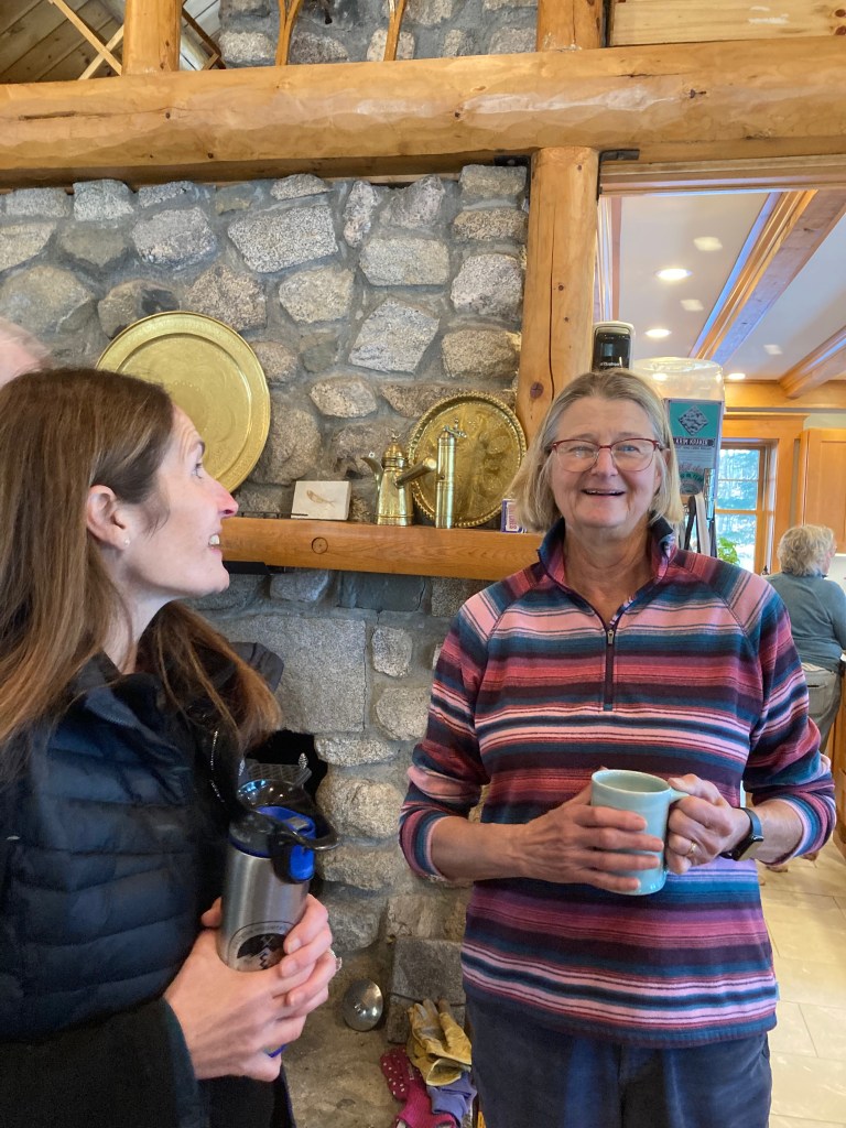 Once down, our group of nine adjourned to Rena and Jacob’s home on Peabody pond where another half a dozen or so “hikers” were already comfortably sitting by the fire eating cookies, drinking coffee, and thoroughly enjoying each other’s company. The dogs, Ruby and Piper seemed content to have stayed home in front of the fire and on the couch.