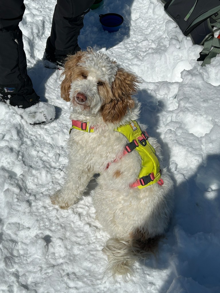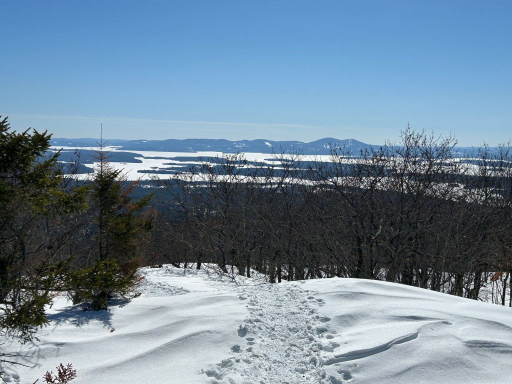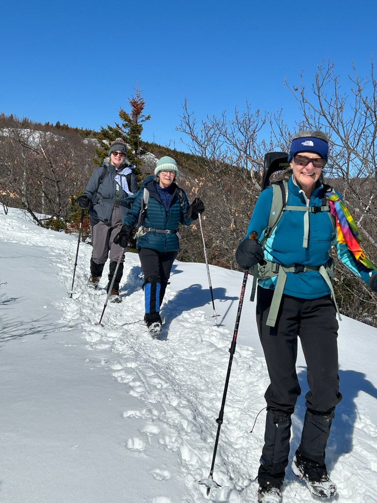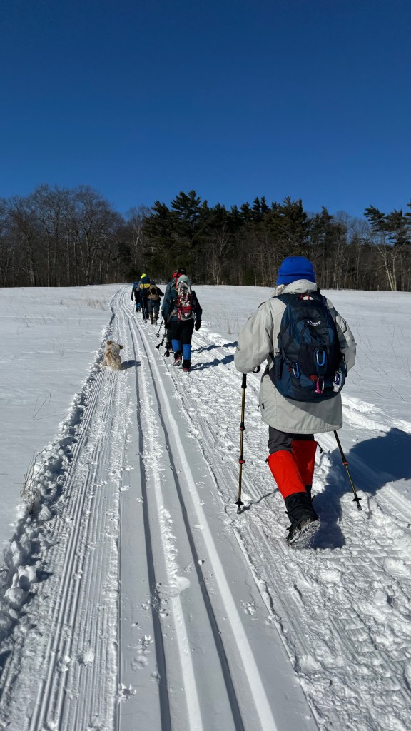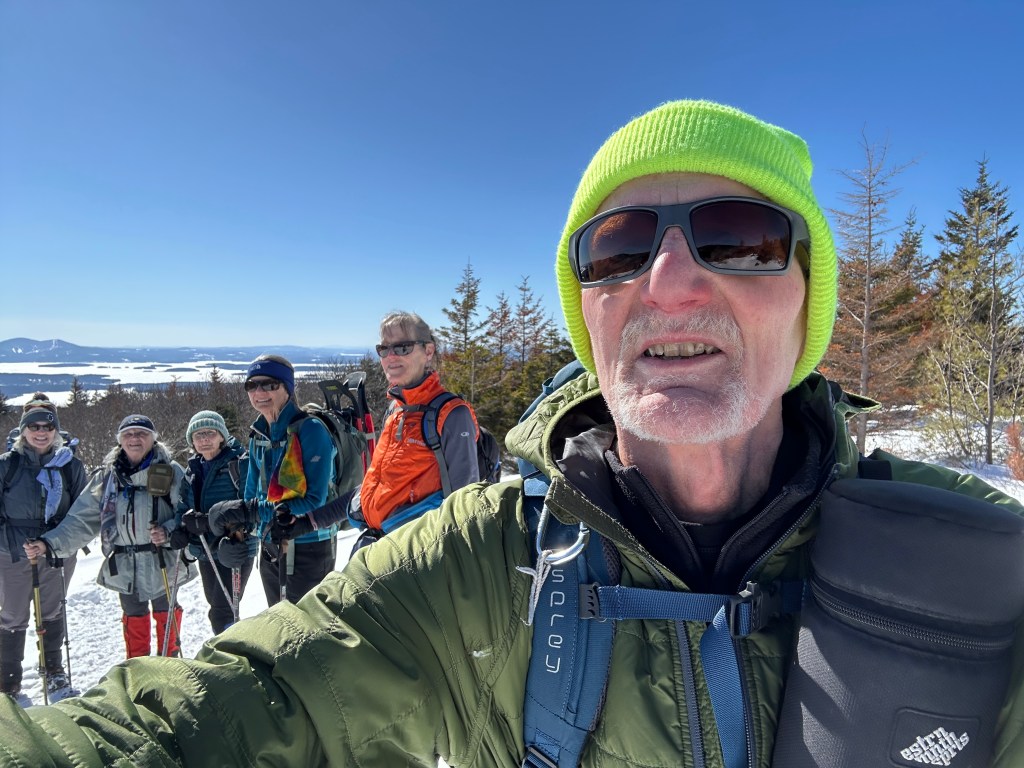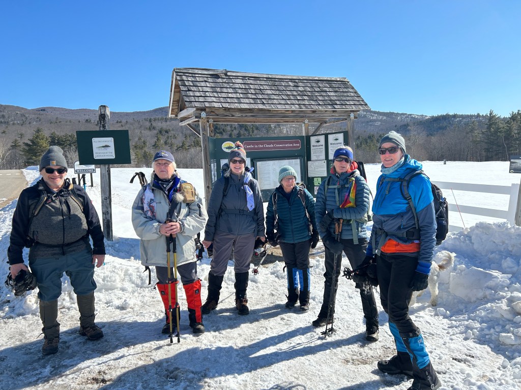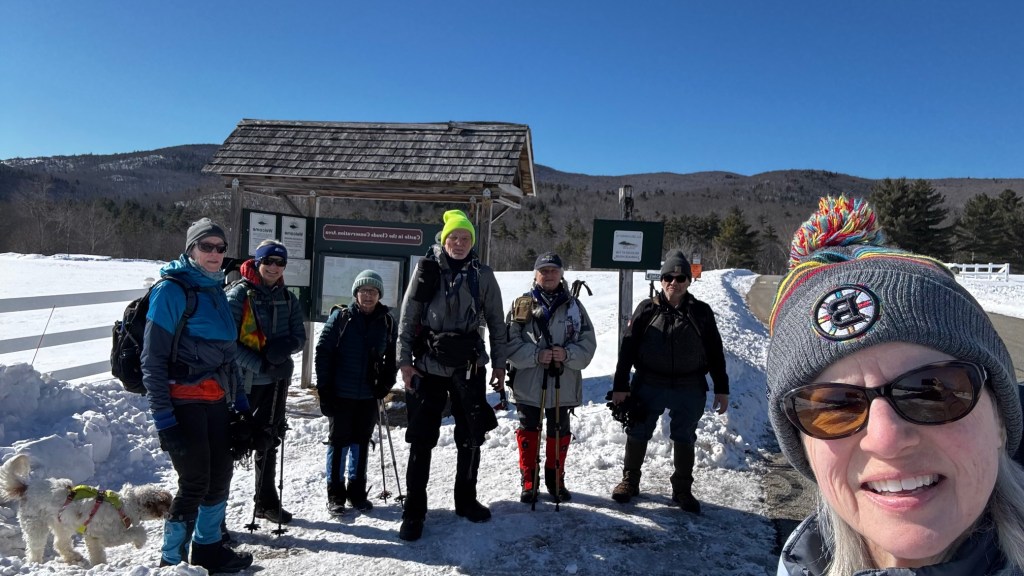 The Denmark Mountain Hikers climbed Mt. Roberts in Moultonborough, New Hampshire on Friday, February 27, 2026. Seven hikers gathered at the trailhead parking lot. Hiking today were Greg Moulton, Robin Marciello, Laura Sullivan, Pat Marchetti, Janet Arens, Linda Seiler, and Trudy Dunn with Willow, the energetic hiking dog.