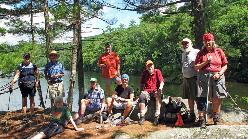 Although some of our hikers, who will not be named, have informed me that the proper name of this mountain is “Singepole”, for now we will continue to use the name Singlepole, as Allen Crabtree did so when he wrote the hike report from our first and most recent climb to the summit on July 12, 2024. This was one of the last hikes Allen completed and while he did not make it to the summit , he managed to hike with the slower and wiser group all the way around Halls Pond.
