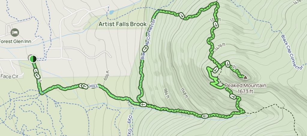 Peaked Mountain is one of several hikes we enjoy in the Green Mountain Preserve that is adjacent to North Conway. This area is owned and managed by the Nature Conservancy but is part of a larger matrix of contiguous conservation lands that include Conway town land, the Conway State Forest and the White Mountain National Forest. The Green Mtn Preserve has over 50 miles of hiking trails that include routes to the summits of Middle Mountain, Peaked Mountain and Black Cap, and also lead to the town’s Pudding Pond conservation area.