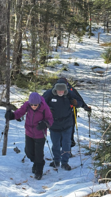 As the recent warm weather had reduced the snowpack and the cold temps Thursday night had thrn hardened the snow, micro-spikes were the appropriate choice over snowshoes or bare boots.