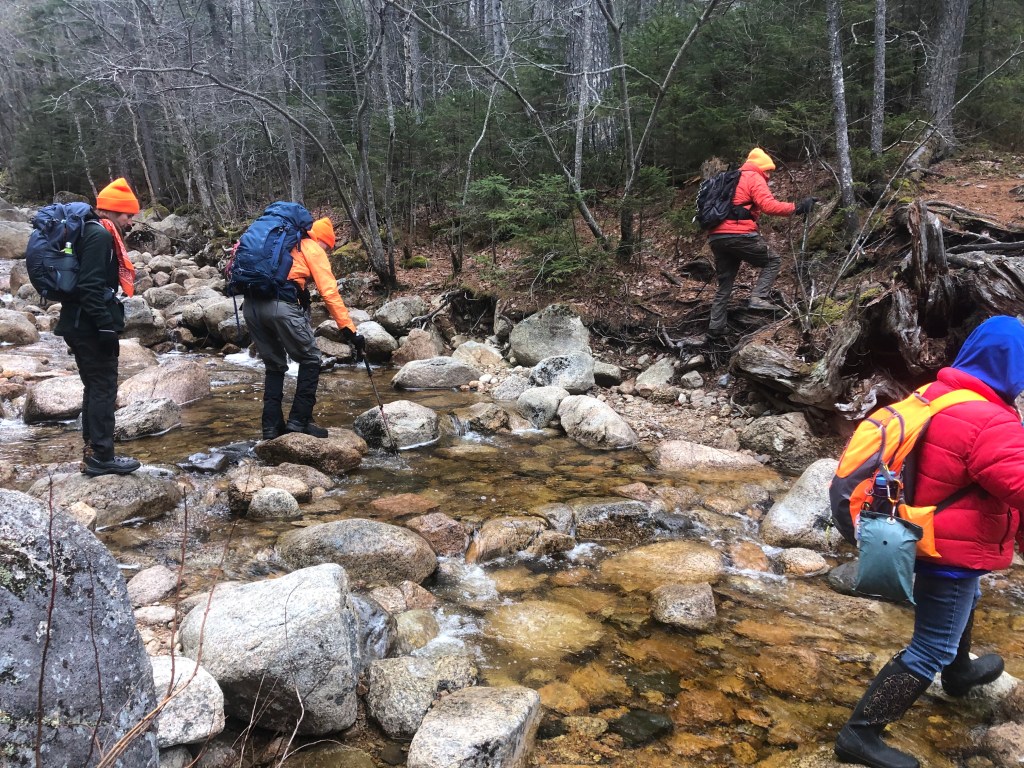 We almost lost Carol to hike the Osceola’s which she needs for her 4ks but she decided to stay with us! We had a pleasant lunch at the end of the second pond at 2.63 miles and about 500 elevation. We did have a few water crossings, one of which was a bit tricky.
