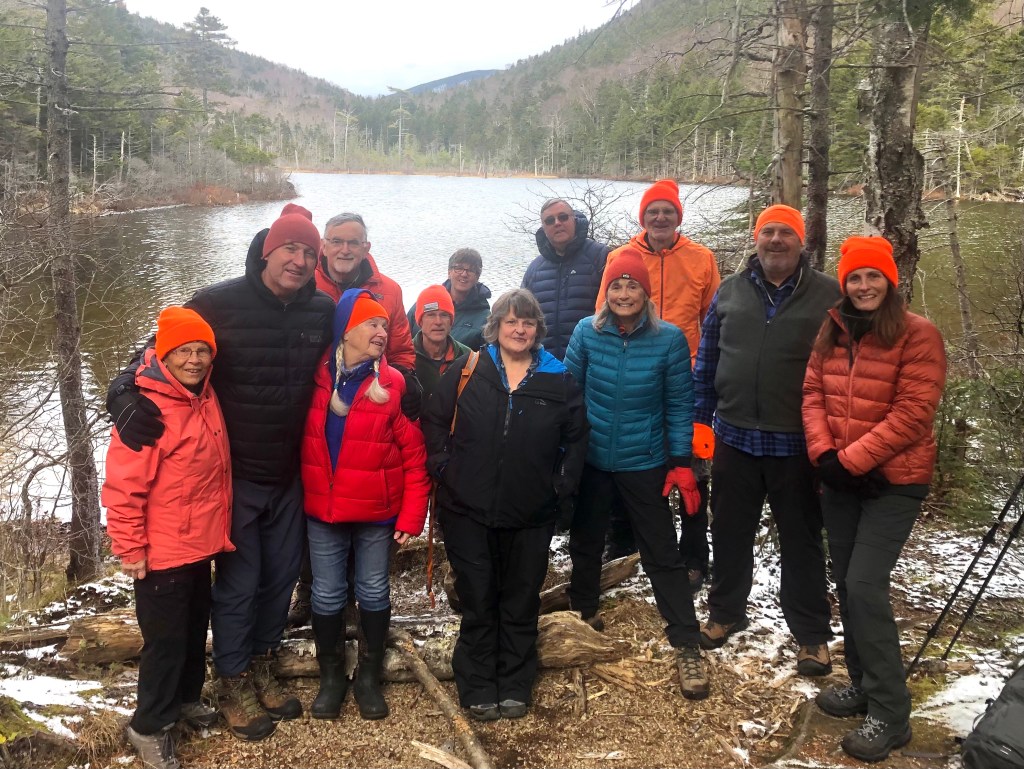 Denmark hikers, 13 strong, had a very pleasant hike to both Greeley Ponds today. Though we all carried micro spikes, they weren’t needed. Gordon told us about a cross country trail that runs next to and crossed our path a few times.